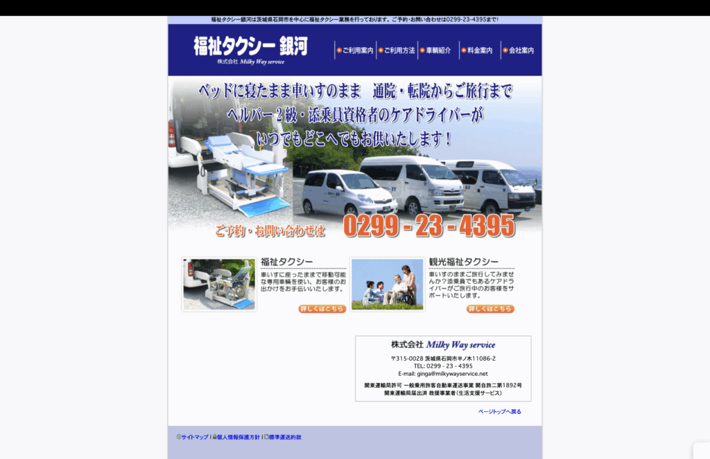 特徴:石岡市全域をカバーし、病院・施設への送迎に特化。介護資格保有ドライバーによる丁寧な対応が好評。